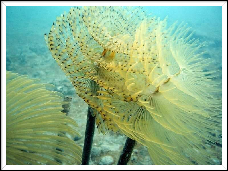 Large membranous tubes with complex, spiral, orange-brown, banded tuft.