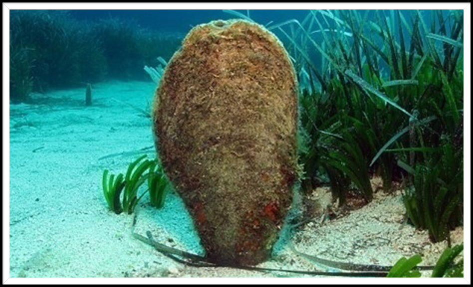 El mayor molusco mediterráneo, puede alcanzar 1 metro de largo. Vive principalmente en alguneros y es muy vulnerable a las anclas.